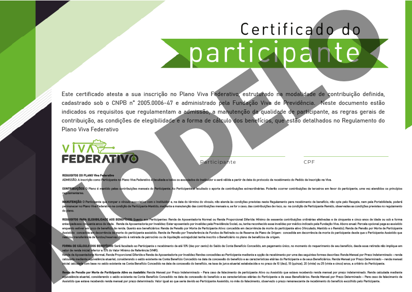 O plano Viva Federativo não contém risco atuarial, ou seja, o participante irá receber no futuro o resultado acumulado das contribuições e da rentabilidade, sem a possiblidade de déficit atuarial.